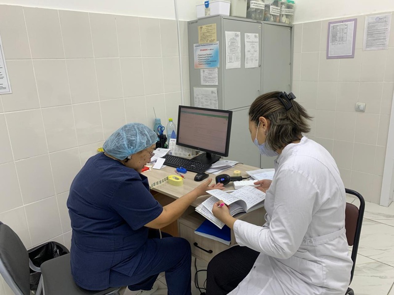 Қабылдау барысында дәрігерлермен бірлесіп пациенттермен жұмыс жүргізіліп, АИТВ-ға тексеруге жолдама берілді.