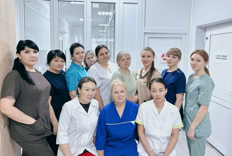 Состав среднего звена: старшая медсестра с высшим образованием - Рахимова Алмагуль Толеухановна, 2 медсестры кабинета забора крови: Нурнагимова Анар, Каирбек Асем Шарыпхановна, 6 участковых медсестёр диспансерного наблюдения: Шушкова Ольга Юрьевна (медсестра с высшим образованием), Барон Ирина Викторовна, Габитова Анаргуль Бахытбековна, Исаенко Наталья Владимировна (медсестра с высшим образованием), Зуева Кристина Вячеславовна, Назыроллақызы Асыл и медсестра дружественного кабинета - Авдеева Людмила Сергеевна.